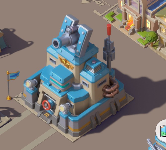 As seen above, we can’t see what the game’s version of the back of the headquarters! So I had to think of something to finish up the back side …